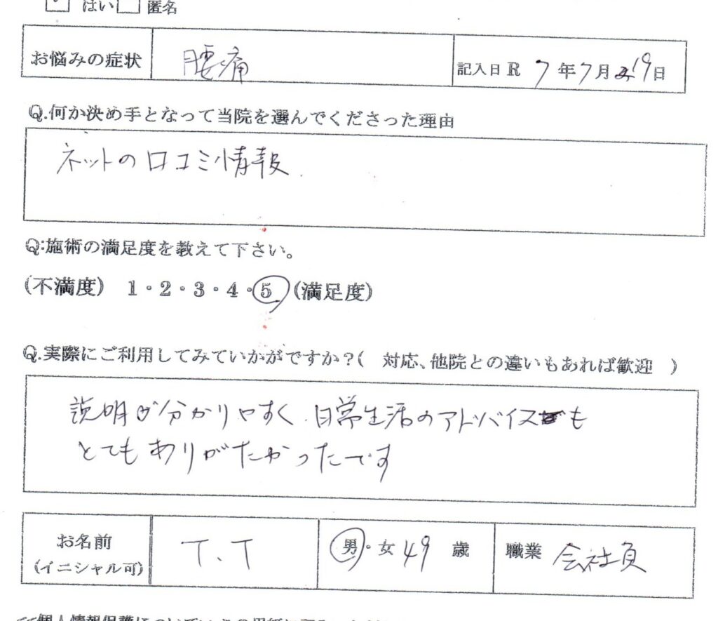 説明が分かりやすく、日常生活でのアドバイスもとてもありがたかったです。