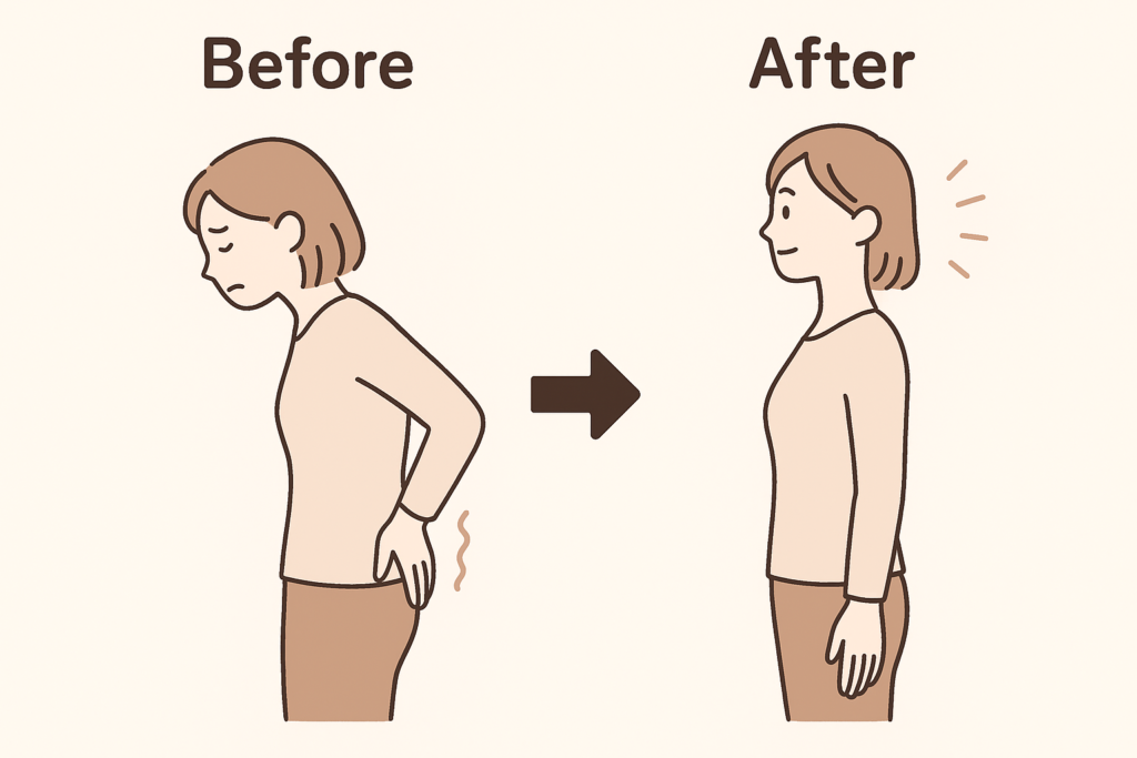 前かがみ姿勢が続く毎日の中で、“呼吸が入りやすい姿勢”を意識するだけでも、背中まわりの負担は変わっていきます。