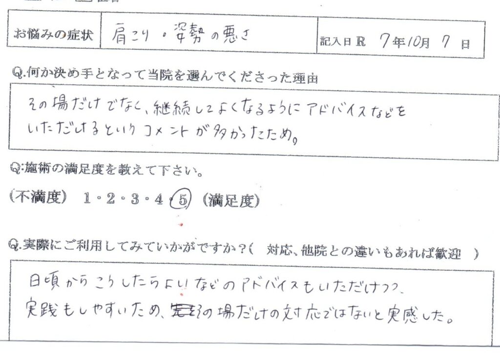 姿勢から整えて、肩こり・頭痛が軽く。 “その場しのぎではなく根本改善を”と選ばれた理由