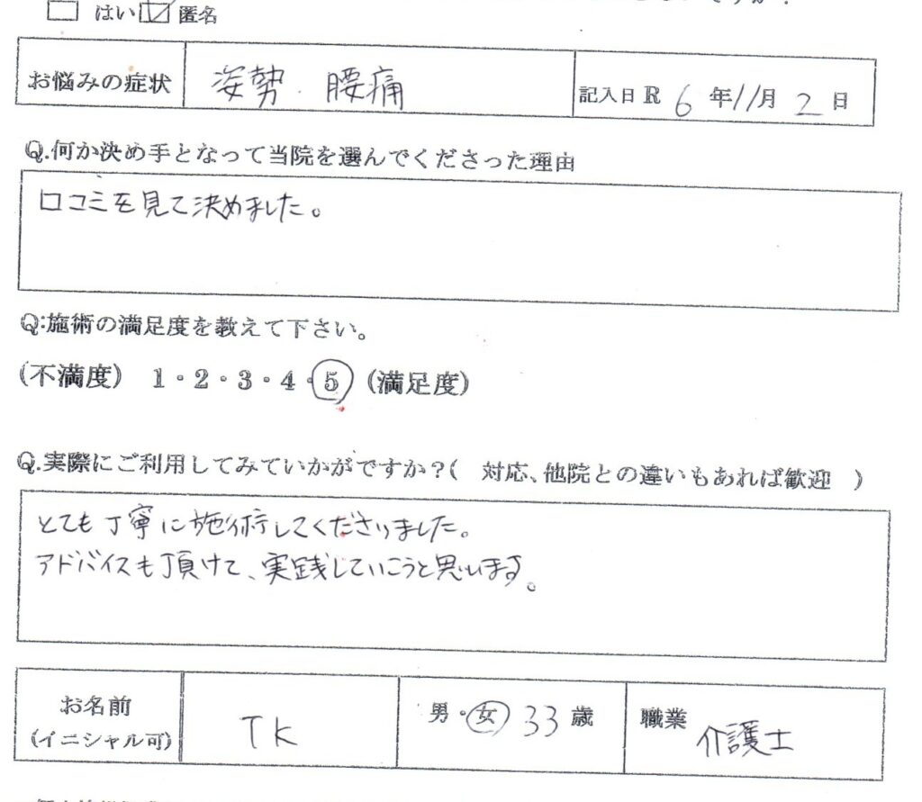 腰痛・姿勢の崩れ・首肩こり にお悩みでご来院されました。