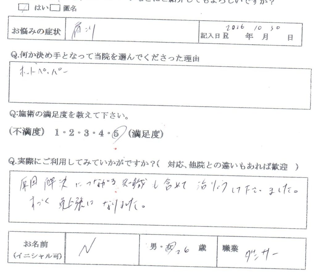 原因解決につながる知識も含めて治りょうして下さいました。