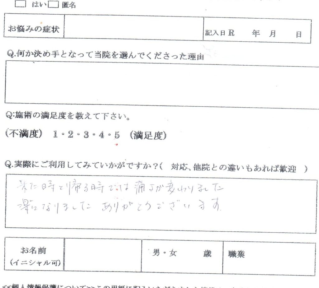 「来た時と帰る時では痛さが変わりました。楽になりました」とのお言葉、とても励みになります。