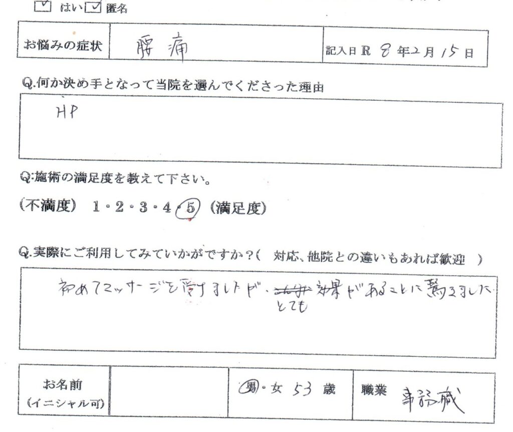【腰痛】53歳 男性・事務職